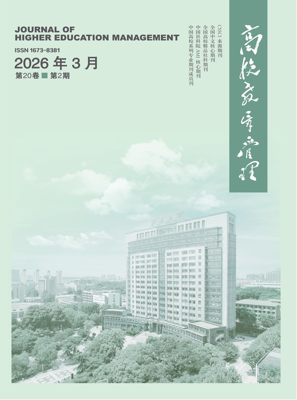 《高校教育管理》为中文社会科学引文索引(CSSCI)来源期刊、北大中文核心期刊、RCCSE中国核心学术期刊、人大“复印报刊资料”重要转载来源期刊,是江苏大学主办,中国高等教育管理研究会协办的全国性高等教育管理专业期刊。本刊目前是中国人文社会科学来源期刊,已被国内外重要期刊数据库全文收录。主要刊登高等教育管理学科的学术论文。包括高等教育管理学理论、高等教育管理体制、高等教育法规与政策、高等教育财政、高等教育领导与能力、高校教学管理、高校学生管理、高校师资管理等有创新性研究成果的相关内容。 双月刊