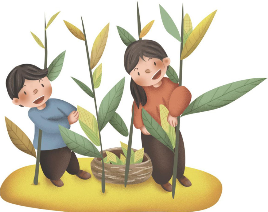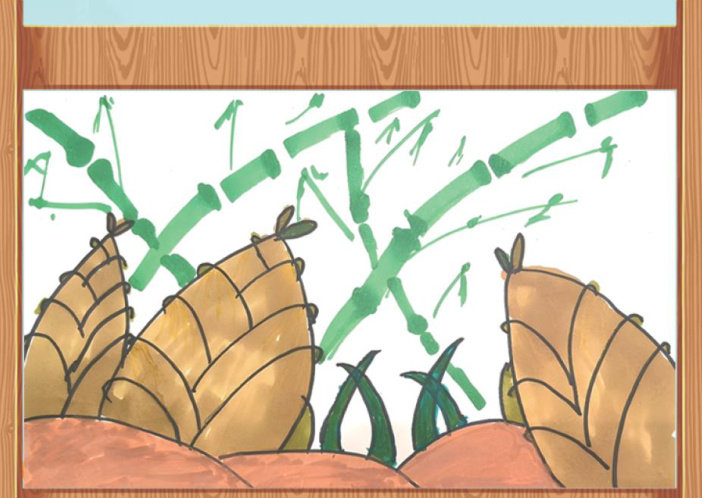 一场春雨把每片竹叶洗得发亮,我们的竹林寻宝开始了。 我和姐姐蹲在后山的竹林里,外婆教我们挖竹笋。她用小锄头轻轻扒开落叶堆,找到一个个冒出地面的褐色小尖角,用力一挖,胖乎乎的竹笋裹着毛茸茸的外套,从大地的被窝里探出身来。 “咔、咔…"竹林里响起此起彼伏的挖笋声,好像在演奏首优美的乐章!整齐堆放在一起的竹笋,好像穿着铠甲的士兵在列队。 回到家,灶膛里的柴火劈啪作响。外婆把最嫩的笋尖切成薄片,先焯