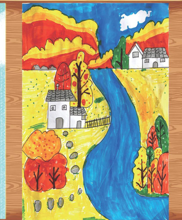 秋天是什么颜色呢? 我问小草弟弟 它轻轻地告诉我: 秋天是黄色的。 我问枫叶姐姐 它温柔地告诉我: 秋天是红色的。 我问松树伯伯 它大声地告诉我: 秋天是绿色的。 我问聪明的爷爷 他骄傲地告诉我: 秋天是绚丽多彩的! 你瞧! 村庄里, 一定有秋天忙碌的身影 (指导教师:贺珍珍)
