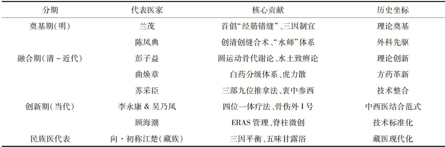 摘要:初步梳理滇南医学流派中从明代至今代表性骨伤科医家的学术演进脉络,提炼核心理论创新与技术特色。基于地方志、著作、论文、非遗档案及现代临床研究等材料,挖掘分析15位代表性医家(兰茂、陈凤典、曲焕章、彭子益、李永康、向·初称江楚等)的学术贡献,总结“理论-技术-方药”三维互动规律。滇南代表性骨伤科医家在诊疗思想中逐步形成“三因制宜整体观”“筋骨动态平衡论”“衷中参西融合术”三大核心思想,完成四大转型:兰茂《滇南本草》奠基地域化用药、陈凤典军医清创术开启开放性骨折处理范式、曲焕章白药分级体系实现战伤急救标准化、李永康“四位一体疗法”建立中西医结合骨伤诊疗范式。民族医学贡献突出包括藏医“三因平衡”理论(向·初称江楚)拓展风湿骨病认知,彝汉药融合(李桐)推动非遗转化等。但目前资料挖掘中仍存在许多不足,包括明代医籍散佚、民族药理机制阐释不足等瓶颈。滇南骨伤科流派是多民族医学智慧与边疆实践融合的典范,建议加强古籍挖掘与民族医药现代化研究。