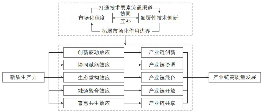 摘要:文章基于2011—2023年中国30个省份面板数据,实证研究新质生产力对产业链高质量发展的影响。研究发现:新质生产力可以显著促进产业链高质量发展;市场化程度与颠覆性技术创新的耦合协同效应,在新质生产力影响产业链高质量发展过程中发挥正向调节作用,并具有一定的异质性;空间效应分析表明,新质生产力对产业链高质量发展水平提升具有正向空间溢出效应。研究结论对厘清新质生产力、市场化程度、颠覆性技术创新与产业链高质量发展的作用机理,进一步明确区域协同的新质生产力发展策略、加速实现产业链高质量发展具有重要意义。