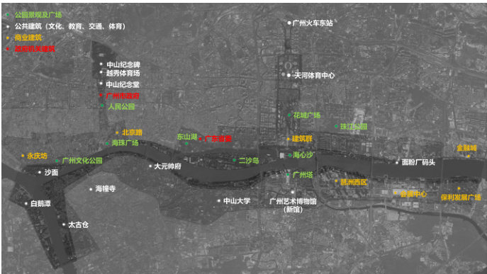 摘 要:本研究旨在探讨城市轴线上文商旅综合体设计策略,为广州城市轴线价值重塑提供参考。?通过分析广州城市中轴线与滨江流域共生演进的空间迭代,从城市空间尺度及天际线形态、慢行道贯通、人群集散及公共空间节点、历史文物活化保护、滨水流域堤岸设计及保护、城市风貌构件标准化设计等六个维度提出文商旅综合体针对性设计策略,并阐述建设实施路径。最终形成面向“一带两轴多节点”格局的多维度设计策略与实施路径,为广州城市轴线文商旅综合体建设提供指导,助力打造高品质城市客厅。