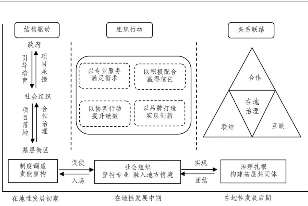 摘要:社会组织参与基层治理是构建社会治理新格局的必然要求,但其如何克服悬浮化困境,实现持续性扎根发展仍需深入探讨。基于对典型案例的历时性分析可发现:社会组织通过融入地方性知识体系,能不断拓展发展空间与业务范围,实现在地性发展。该过程体现为社会组织在基层治理场域中的深度嵌入——凭借专业价值确立机构自主性、通过能动性实践掌握项目话语权、依靠协同行动提升治理效能。这不仅促成了社会组织与服务场景的深度互嵌,保障了组织长期扎根本土情境的可持续发展,也为探索政社互动的新路径开辟了在地空间。