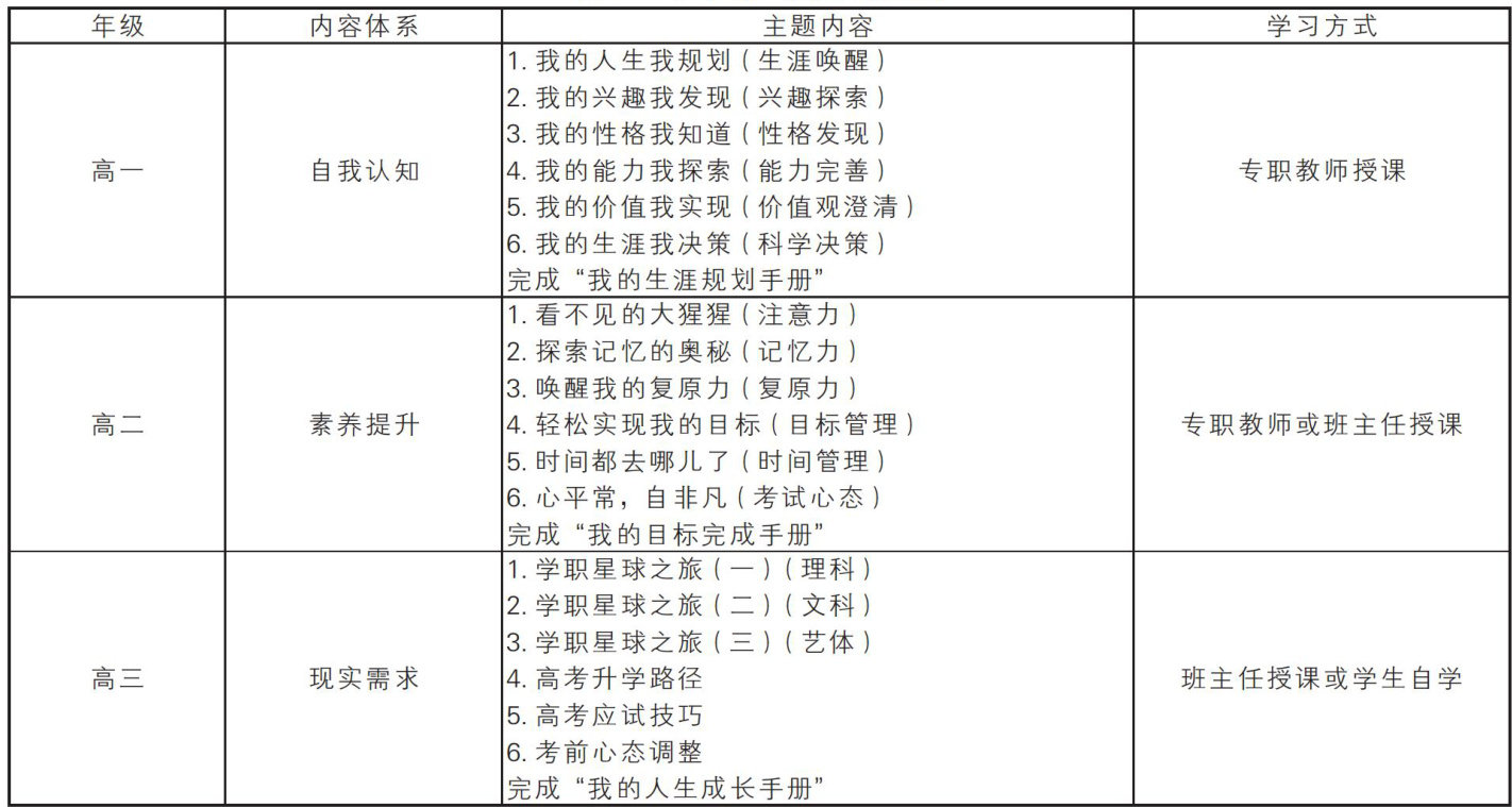 摘要:以陕西省汉中市西乡县第一中学为例,针对县域高中面临的生涯教育师资薄弱、生涯课程不成体系及家校支持不足等问题,开发并实施了校本课程“心规划”。课程以经典生涯理论为基础,构建了“探索一提升一完善”三阶贯通体系,并通过“课堂 + 咨询 + 体验 + 融合 + 家校 + 反馈”六位一体的多元路径加以落实。实践表明,该课程有效提升了学生的生涯规划能力,促进了教师的专业发展,并形成了良好的家校协同育人机制,为县域高中的生涯教育提供了可借鉴的实践范式。