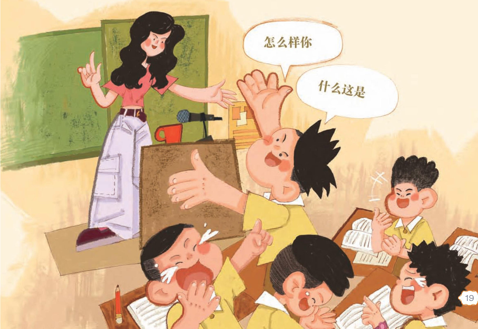 “大家好!” “老师好!”教室门口,一个虎头虎脑的小男孩“啪”地立正,还敬了个队礼,嗓门大得惊飞了走廊上的麻雀。 班主任张老师微笑着说:“你好,你就是新来的转学生王小虎同学吧?” “是的!能和大家成为好朋友,我希望!”小男孩一开口,同学们都乐得哈哈大笑。宇小文觉得王小虎说话真有趣,不过好像颠倒了什么… (一)体育课誓言翻车现场 王小虎最喜欢体育课了,因为在体育课上,他满身的劲都能使出来。