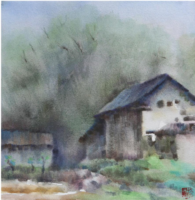(尺寸: 30cm×30cm ) 《记忆中的乡村》水彩画 胡 曼 (尺寸:26cm×35cm) 作者简介:胡曼(1978-),女,湖南常德人,硕士研究生,副教授,从事水彩画、美术教育研究。