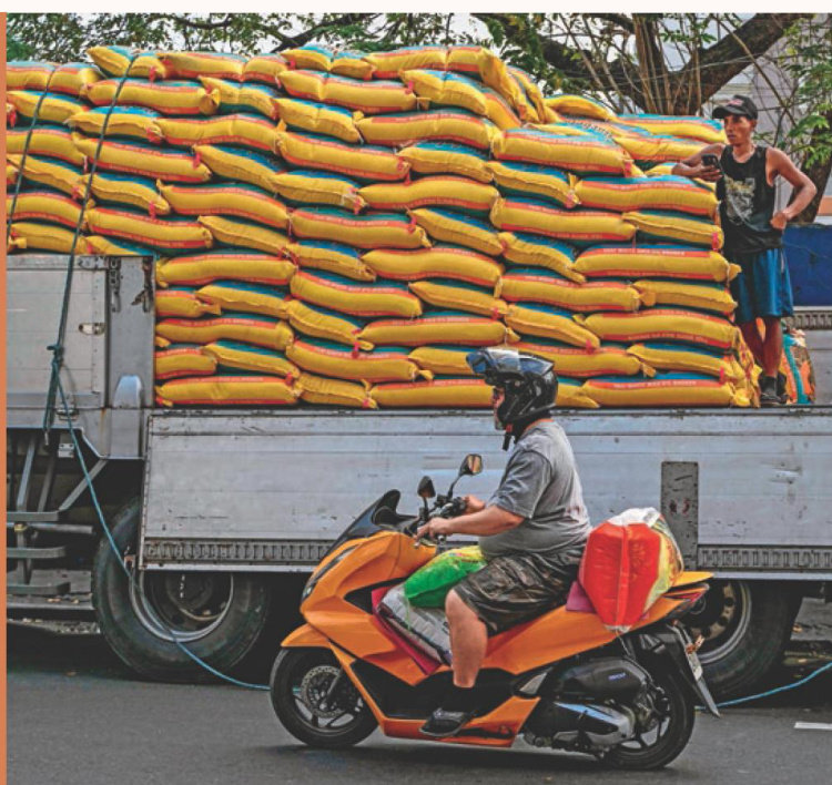 在菲律宾马尼拉,一名男子在街道上骑摩托车运送大米 金秋时节,在马尼拉以北广袤的中吕宋平原上,稻谷收割机正在金黄的田地中忙碌,但这并未给菲律宾农民带来丰收的喜悦,相反,一种更为复杂的焦虑笼罩在这个东南亚国家的农业核心地带。 作为全球最大的稻米进口国,菲律宾正在经历一次典型的政策转向。在一年多前,菲律宾还试图通过大幅减税鼓励进口来平抑国内高涨的物价。然而,2025年11月,这个方向已经完全发生