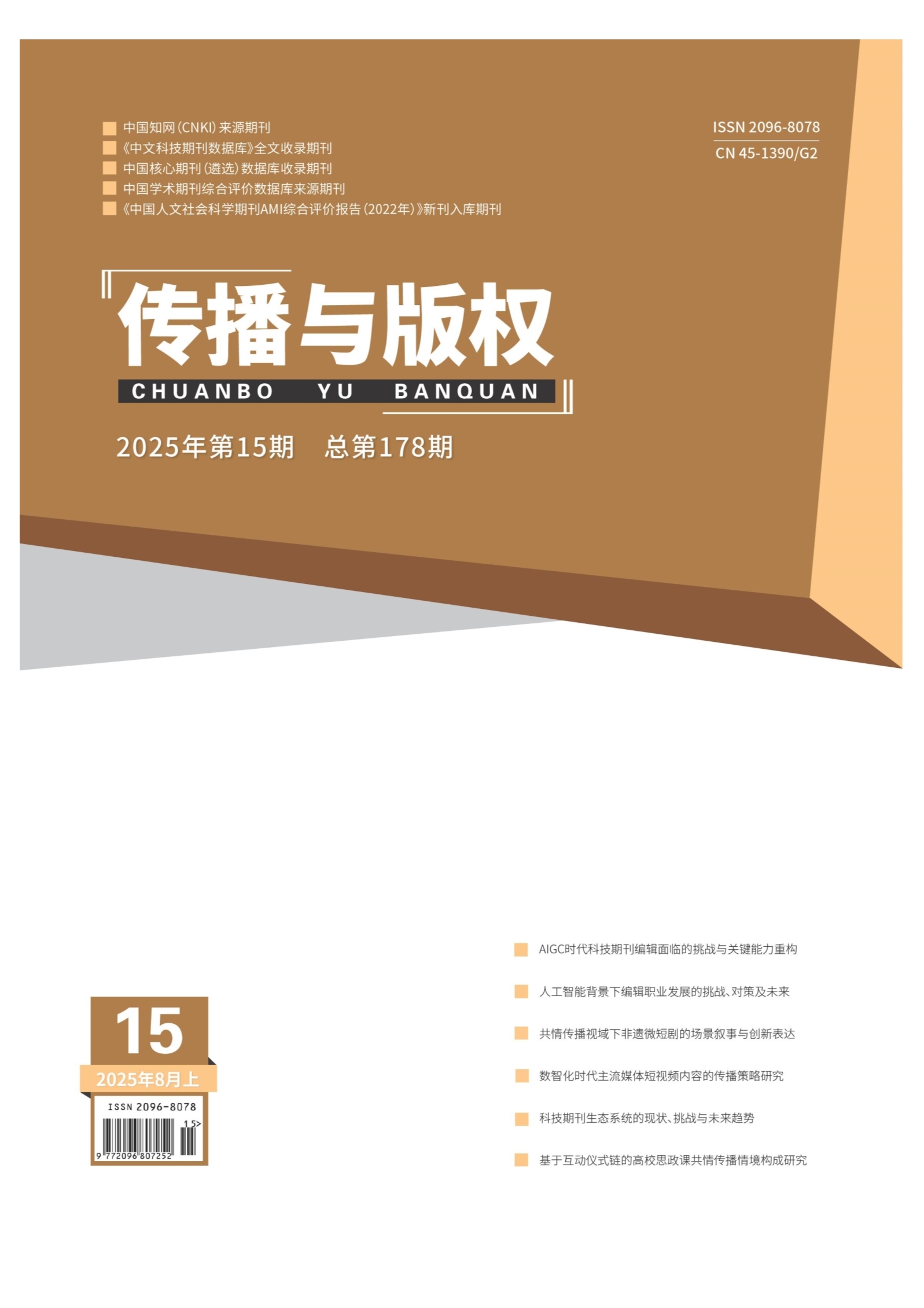 [摘要]生成式人工智能(AIGC)已被广泛应用于科技期刊出版领域,涵盖审稿、选题策划、编辑校对、装帧设计及传播与个体服务等多个智能化环节,显著优化了出版流程,提升了编校质量和学术影响力,并丰富了融媒体传播形态。文章从AIGC赋能科技期刊出版的智能化应用场景入手,发现当前AIGC给编辑带来各种挑战,包括审核能力挑战、应用AIGC工具能力挑战。基于此,文章认为,编辑应提升自身的版权审核能力、伦理审核能力、AI技术工具应用能力、基于创新性和人文价值引领AIGC的能力,旨在更好地适应新时代出版业的创新发展态势。
