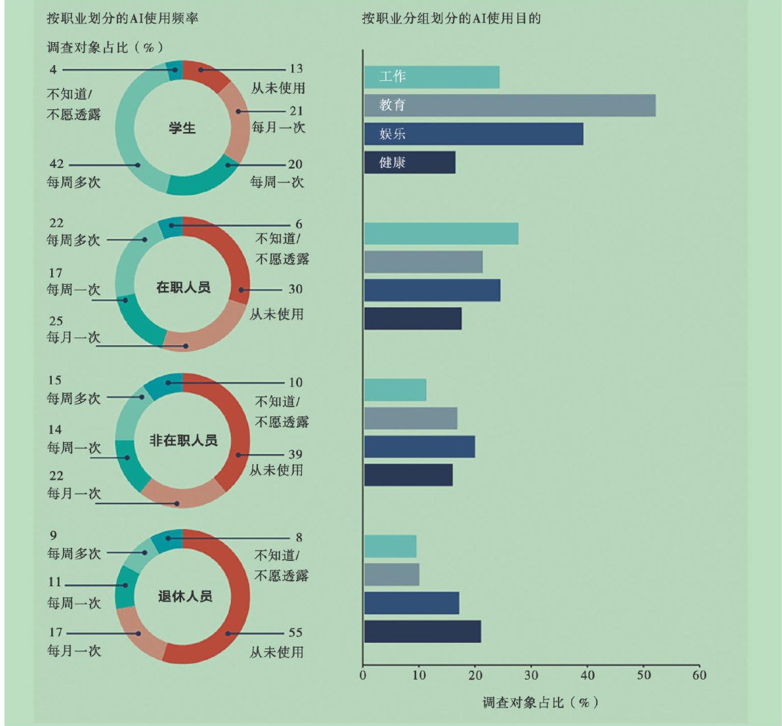 提要:本文从人生全程的发展视角出发,系统分析了人工智能在不同年龄阶段的应用特点、社会影响及政策挑战。研究指出,人工智能使用频率和目的存在显著年龄差异:青少年多用于教育娱乐,在职人员侧重工作效率,老年人则关注健康与社会联结。人工智能在扩展人类能力、促进个性化发展的同时,也带来数字鸿沟、算法偏见、心理健康风险等挑战,尤其对儿童脑发育和青少年情绪健康可能产生长期影响。文章基于人类发展框架提出三大政策支柱:投资基础建设(Invest)普及知识宣传(Inform)、促进包容参与(Include),强调需通过各利益攸关方合作,构建以人为本、包容可持续的人工智能治理体系,使技术进步真正服务于全人类发展。