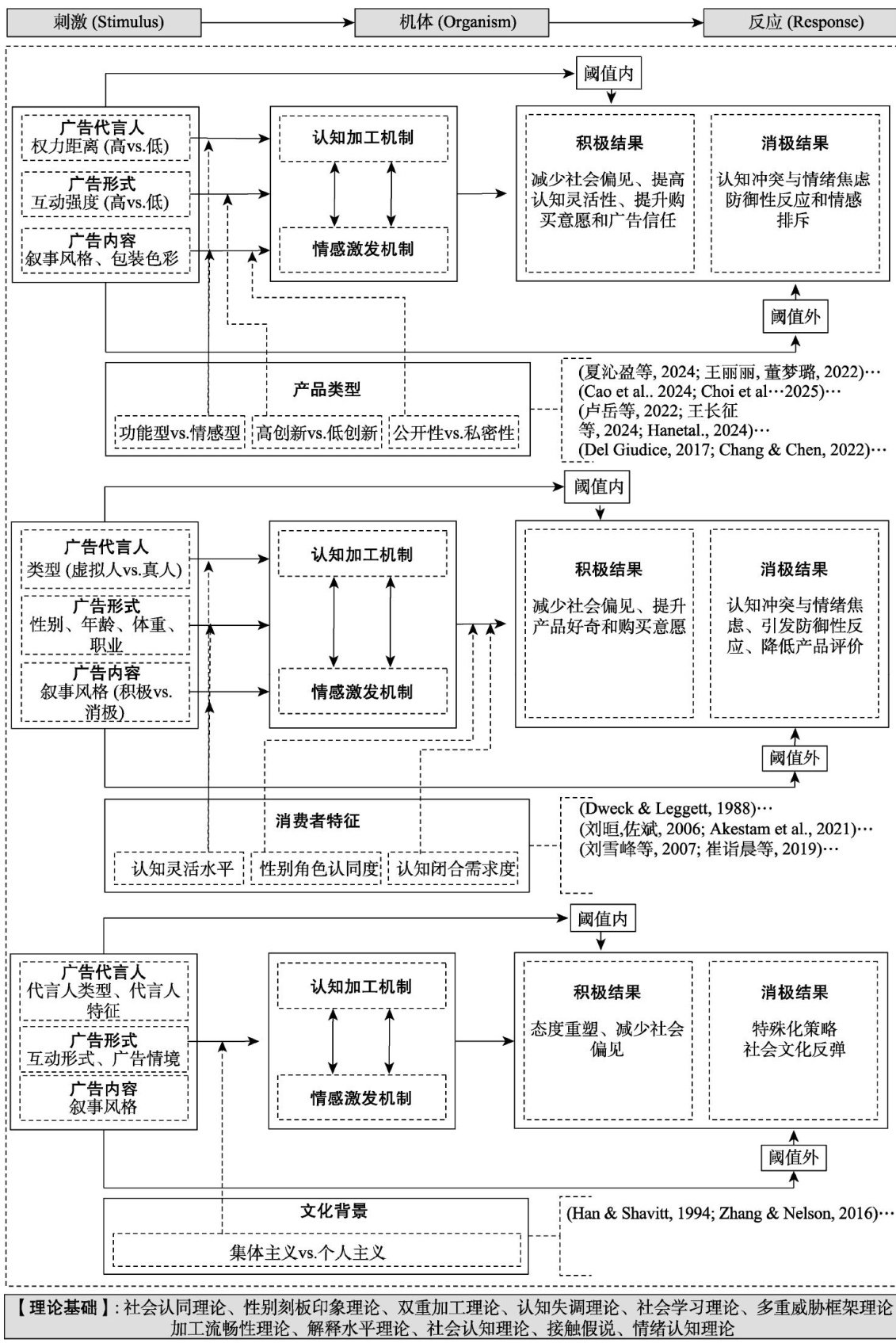 摘要随着消费者对多样性和平等的关注不断提升,反刻板印象逐渐成为营销领域尤其是广告传播的重要实践。但现有研究对反刻板印象的动态作用机制及其媒体情境差异尚缺乏系统性整合。结合营销学 SOR(Stimulus-Organism-Response)理论和ADO (Antecedents-Decisions-Outcomes)分析框架,可系统解析反刻板印象的广告传播效应,同时明确反刻板印象干预的“双刃剑"特征和信息接受阈值效应。研究着重探讨反刻板印象广告传播效应的媒介差异,揭示传统媒体和新媒体在进行反刻板印象传播时存在的媒体适配性差异。未来研究应注意如何利用反刻板印象来改善社会偏见,及其在人工智能领域的应用对广告传播的影响,同时促进反刻板印象研究的跨学科合作。