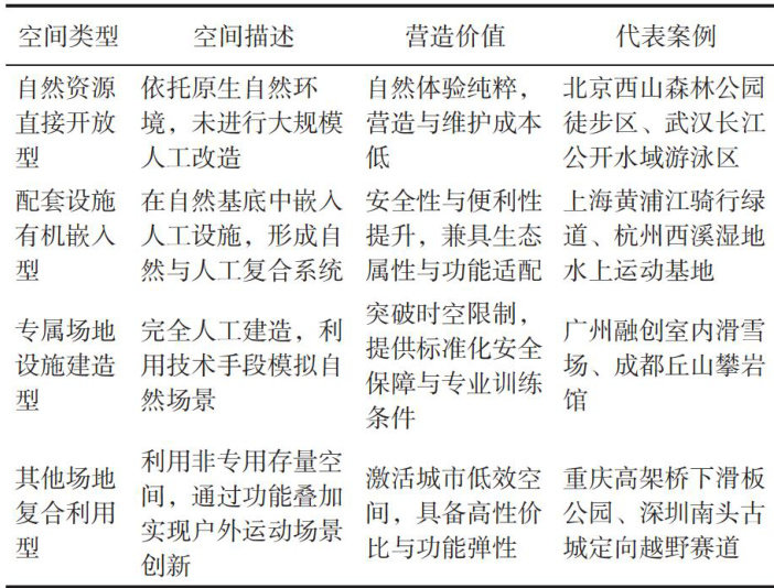 摘要:利用城市自然环境进行户外运动空间营造是丰富全民健身空间供给,满足人民群众多元化健身需求的重要途径,对于打造高质量城市户外运动目的地,激发户外运动消费活力等具有重要意义。运用文献资料、逻辑分析、比较分析等方法对城市户外运动空间营造的逻辑、困境、经验与启示进行探讨。认为,城市户外运动空间包括自然资源直接开放、配套设施有机嵌入、专属场地设施建造、其他场地复合利用等4种类型。城市户外运动空间营造具有破解全民健身空间困局、助力美丽城市建设、支持产业要素空间协同的价值,但也面临生态保护与功能开发的强度失衡、刚性规划与弹性需求的时序错位、技术嵌入与业态联合的场景缺失、社会资本与公众参与的机制薄弱等困境。发达国家的成功经验主要有:坚持生态保护与空间拓展有机统一的设计理念、强调空间整合与多维需求有效衔接的开发布局、营造数字赋能与业态融合共生驱动的使用场景、建立政府引导与多元共治长效协同的管理机制。提出本土启示:注重理念升维,实现空间利用与生态底线的有效耦合;突破开发边界,构建空间统筹与需求适配的规划体系;推动场景革新,促进数字技术与业态融合的共生赋能;创新制度设计,健全有效市场与有为政府的协同机制。