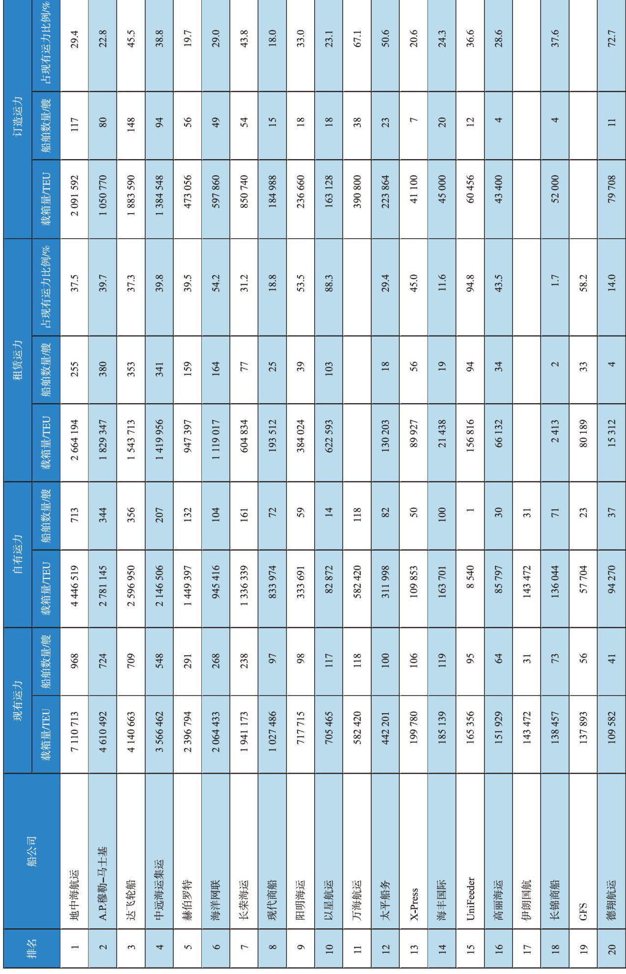 全球二十大集装箱船公司运力排名(截至2025年12月22日)